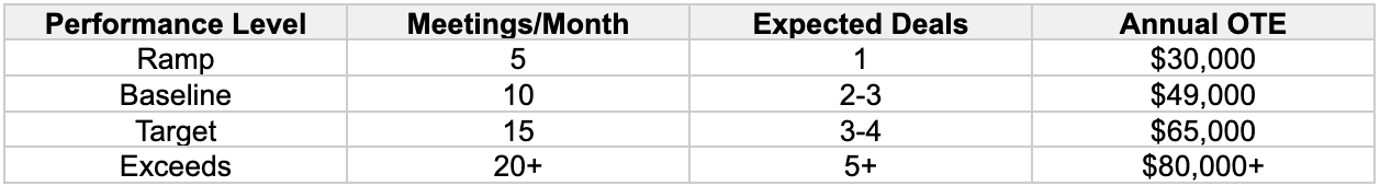 Base: $18,000/year + 4% commission on closed deals (uncapped). Average deal size: $26,000.